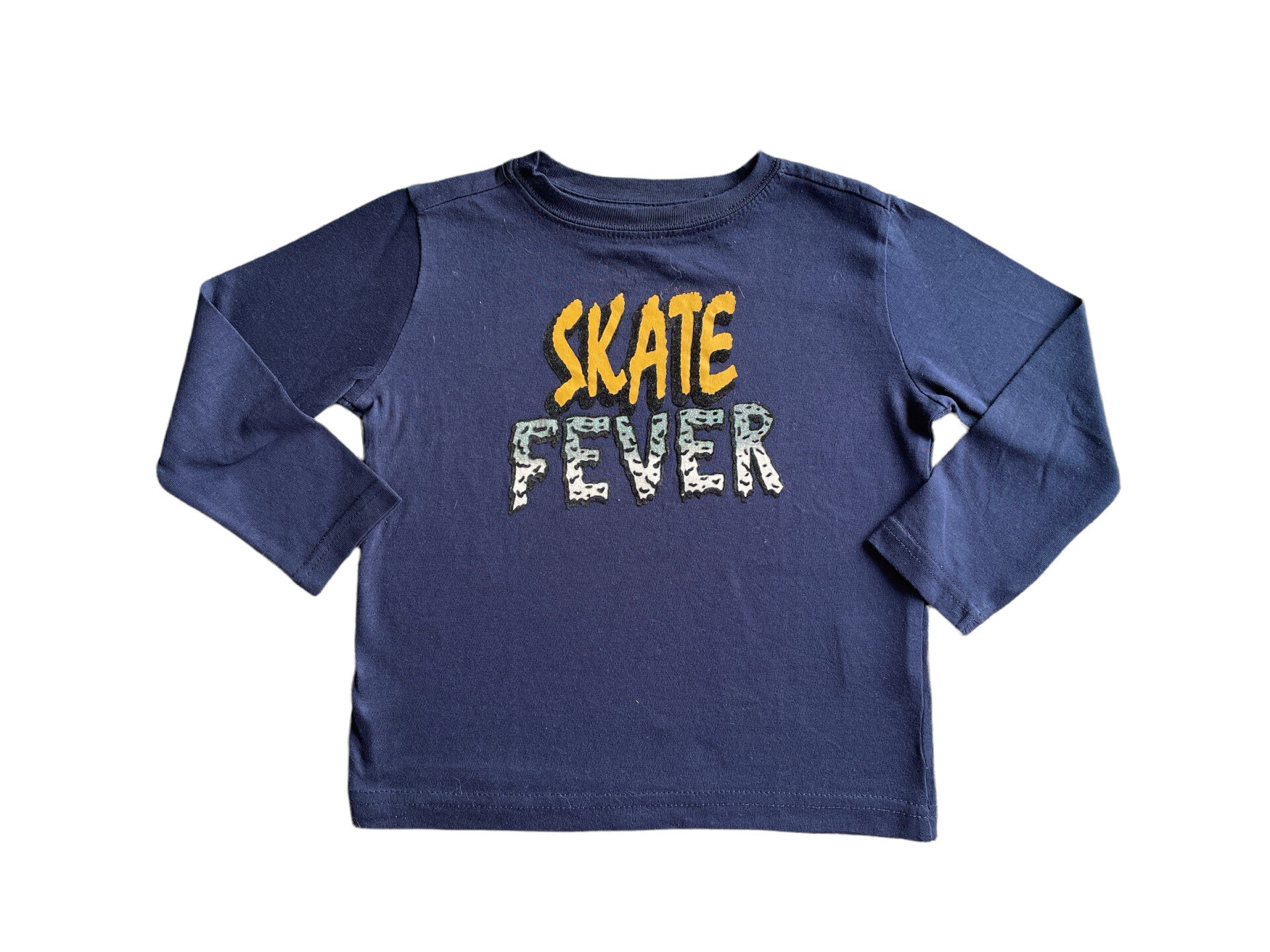 Deze blauwe longsleeve is afgewerkt met leuke details. De oranje letters zijn in een dikke stevige print. De andere letters glinsteren subtiel.